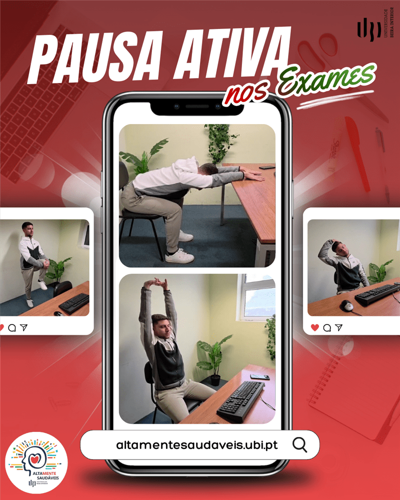 A Universidade da Beira Interior (UBI) desenvolveu um conjunto de vídeos com exercícios para incentivar os estudantes a promover a saúde e o bem‑estar durante este período de estudo intensivo da época de exames. Os vídeos “Pausas Ativas” estão disponíveis online – no projeto Altamente Saudáveis.UBI – e propõem exercícios breves e acessíveis, pensados para ajudar na recuperação da energia e concentração durante períodos prolongados de estudo.